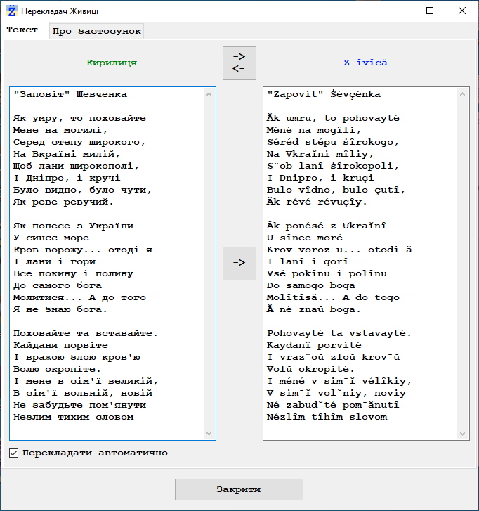 Перекладач Живиці: